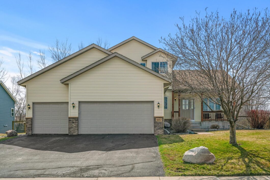 kitchen includes barstool seating, new appliances, countertops, and an informal dining room. Need a space for your home office, or perhaps a cozy reading nook? The flex room on the main level offers versatility to tailor the space. Upstairs has updated bathrooms. Step outside and discover your large deck for entertainment with a private and spacious backyard showcasing the nature views and pond, a serene space where you can unwind and enjoy the outdoors! Many updates throughout including: New roof, siding, washer/dryer, heated garage, carpet, hardwood floors, all new faucets. The owners have spared no expense of time, money and effort to make this move in ready condition. Welcome home!!